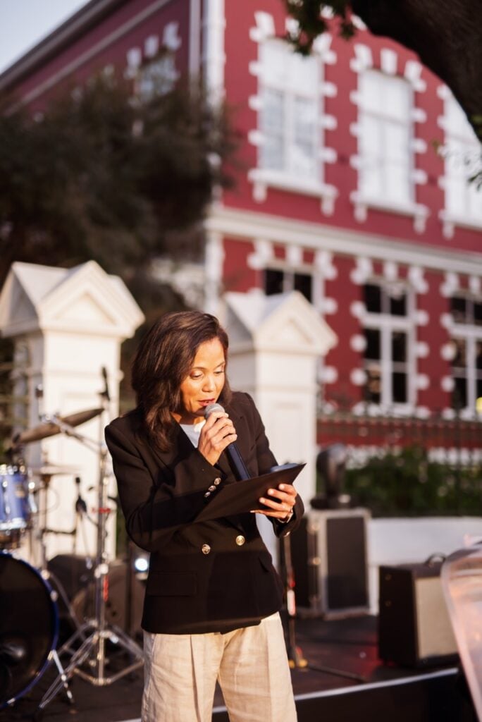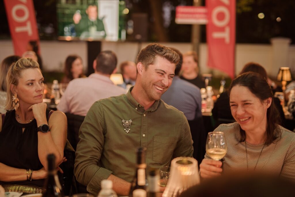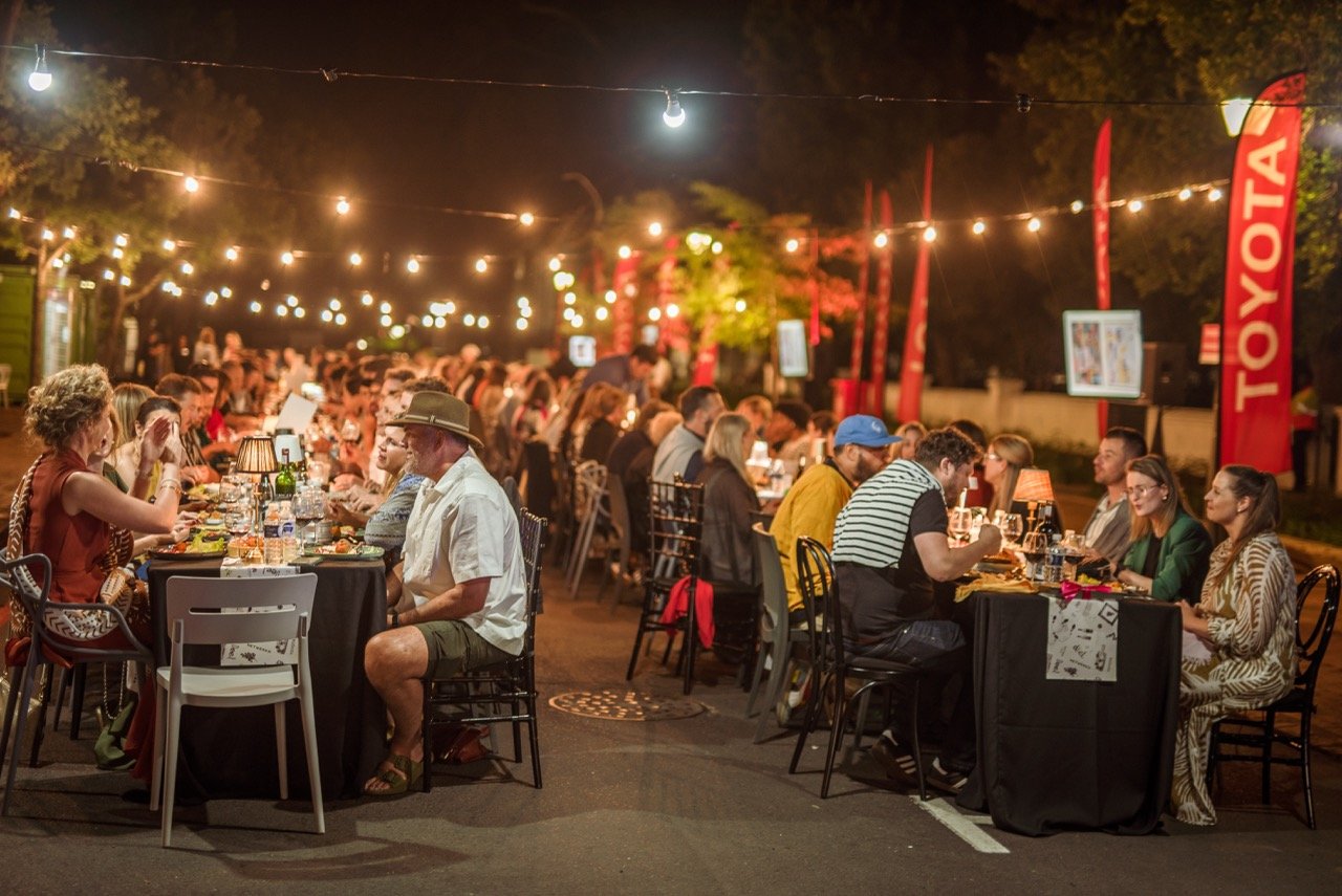 The Langtafel was also a celebration of 25 years of the Toyota Stellenbosch Woordfees. It reflected our theme – everything we share and that connects us – community, art, culture, and stories. Carla McKenzie hosted the evening, with entertainment by Moonshine and the Nomadic Orchestra.