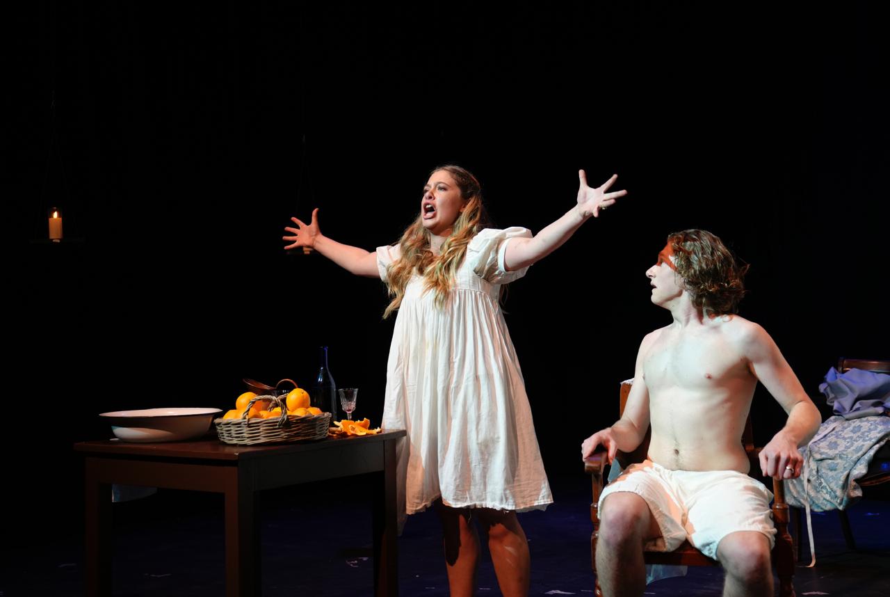 Meneer, dit is miskien ook ’n goeie idee om mooi te kyk wie en wat agter die sluier skuil voordat jy jou mantel en kroon oorgee. Koekemoer is oortuigend as Amélie: gretig-beskeie en onderdanig, maar agter die sluier en weggesteek in die trousseau wag daar iets anders op boer Willem: “koning” wat eintlik nog ’n kind is. Wentzel vertolk hierdie onskuldige, kwesbare rol gemaklik en met opregtheid. Daar is talle oomblikke in en om die hemelbed wat die gehoor laat skater, veral met Angelique Filter se ondersteunende rol as die diensmeisie wat sorg vir nog komiese oomblikke. Die klein rukkie wat sy op die verhoog te sien is, laat jou wens vir meer.