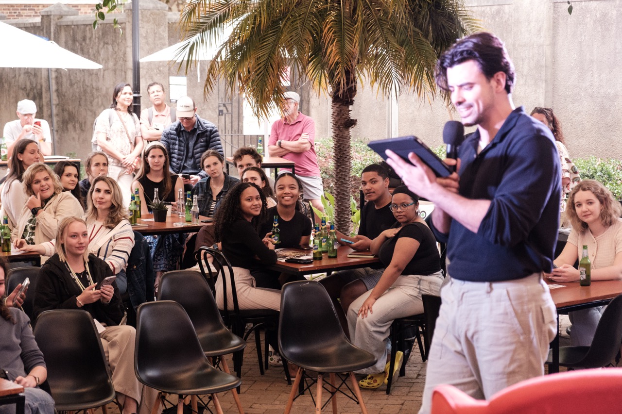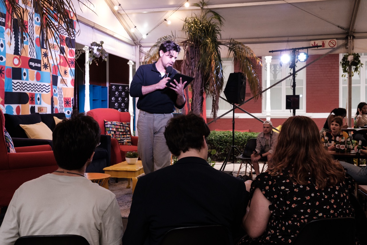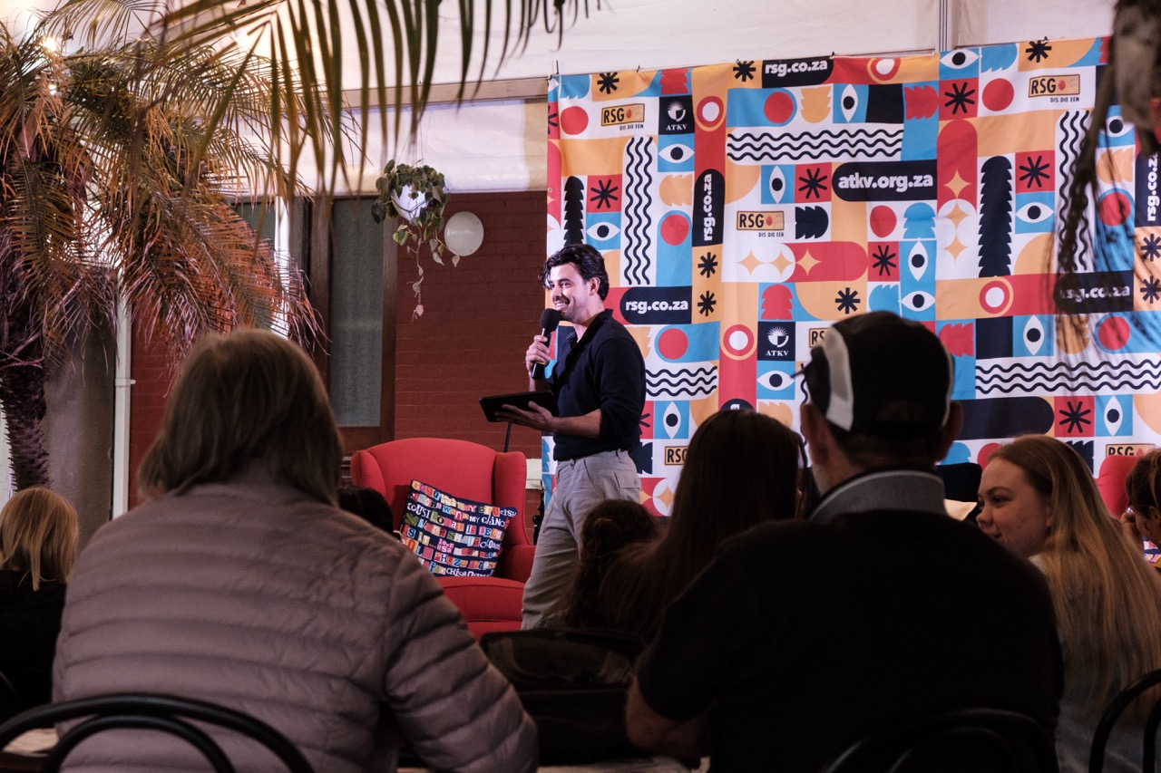 VIA se gewilde speletjiesprogramme Slim vang sy baas en Klankbank was terug by die Toyota Stellenbosch Woordfees vir twee ure van plesier met Bier-uur! Feesgangers het kom kuier, speel en ’n gratis bier met die speletjiesmeesters Beer Adriaanse en Arno Greeff geniet.