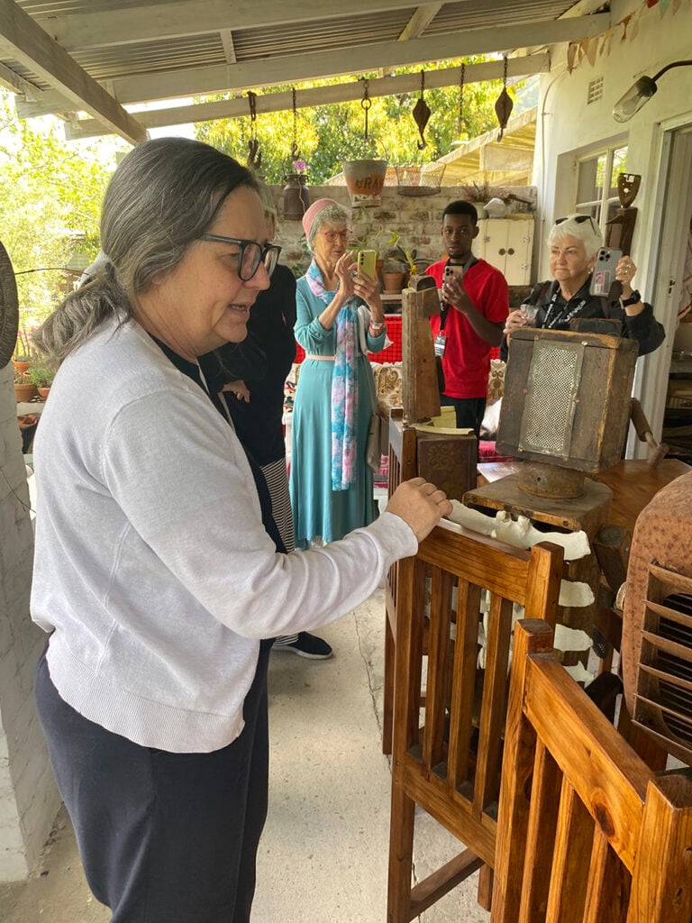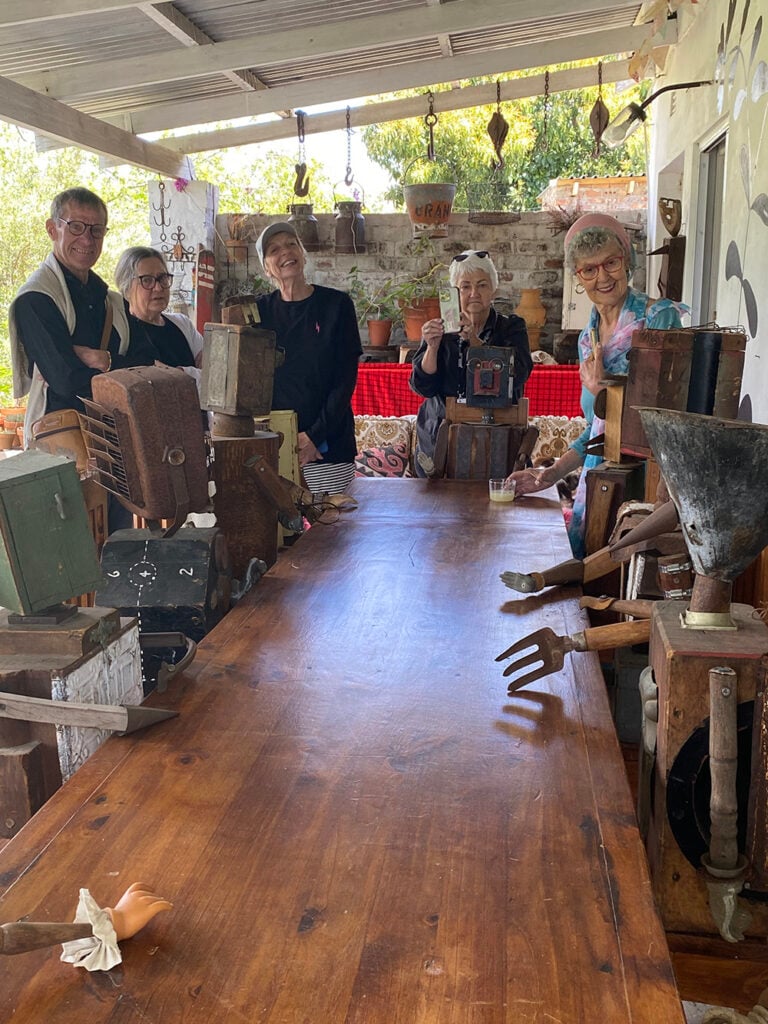 Daar is vyf van ons wat Marinda du Toit die oggend van 16 Oktober by haar huis en ateljee in Pniel besoek. Sy vertel van haar besoek aan Parys waar sy ’n kunsresidensie gehad het, vertel waar haar inspirasie vandaan kom en hoe sy die skoonheid in dinge sien wat ander mense dalk sal weggooi.