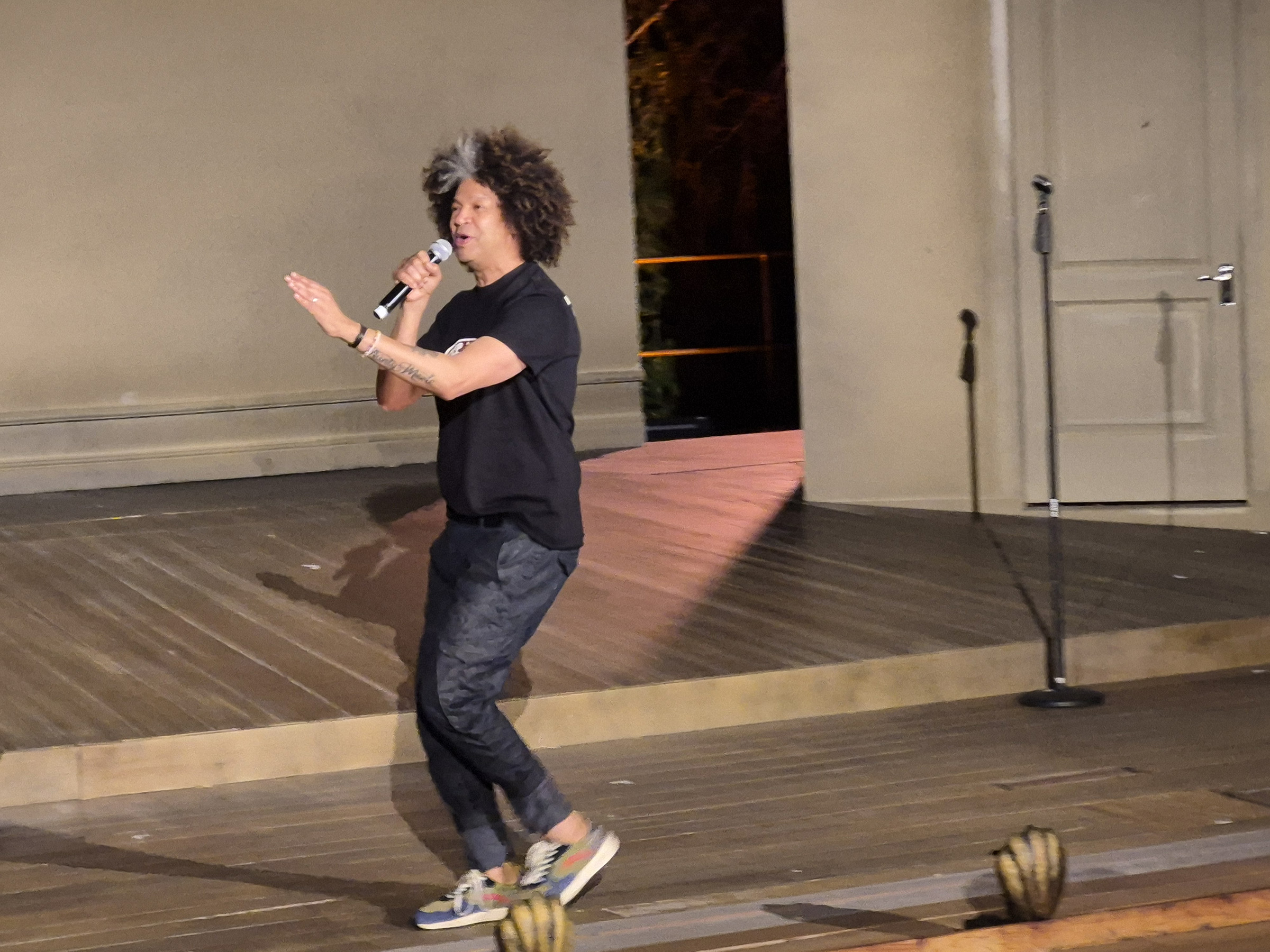 Marc Lottering kom ligvoets oor die amfiteater se verhoog geprance. “I heard Moffie got cancelled, so toe kom kyk julle maar vir die ander een? Sorry, nè?”