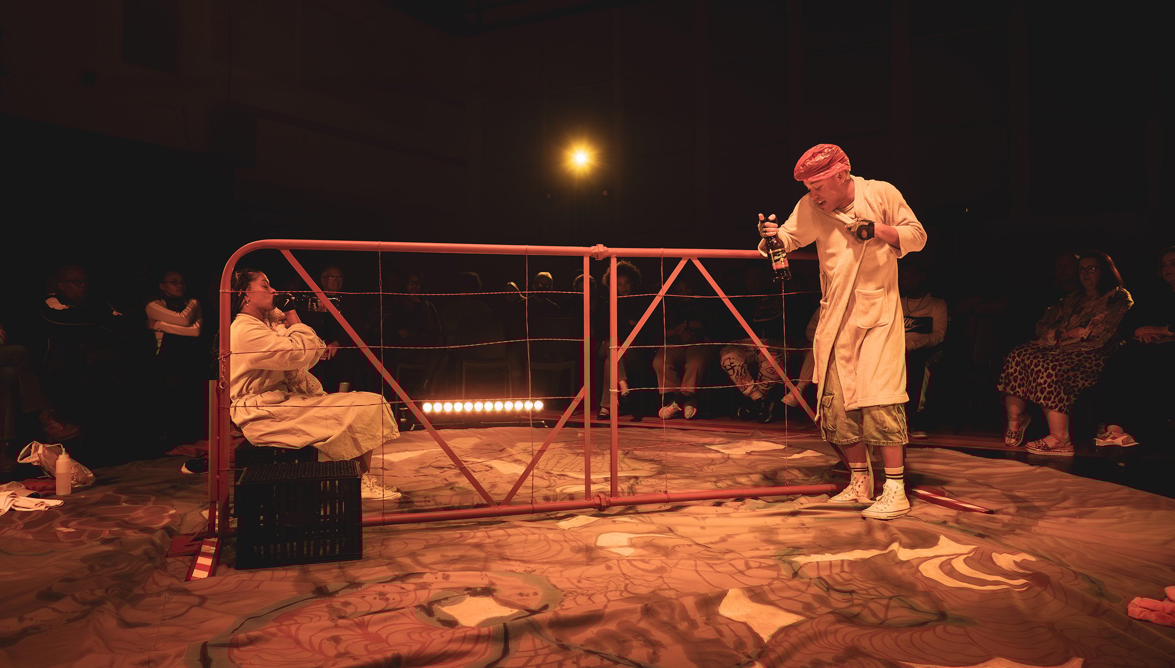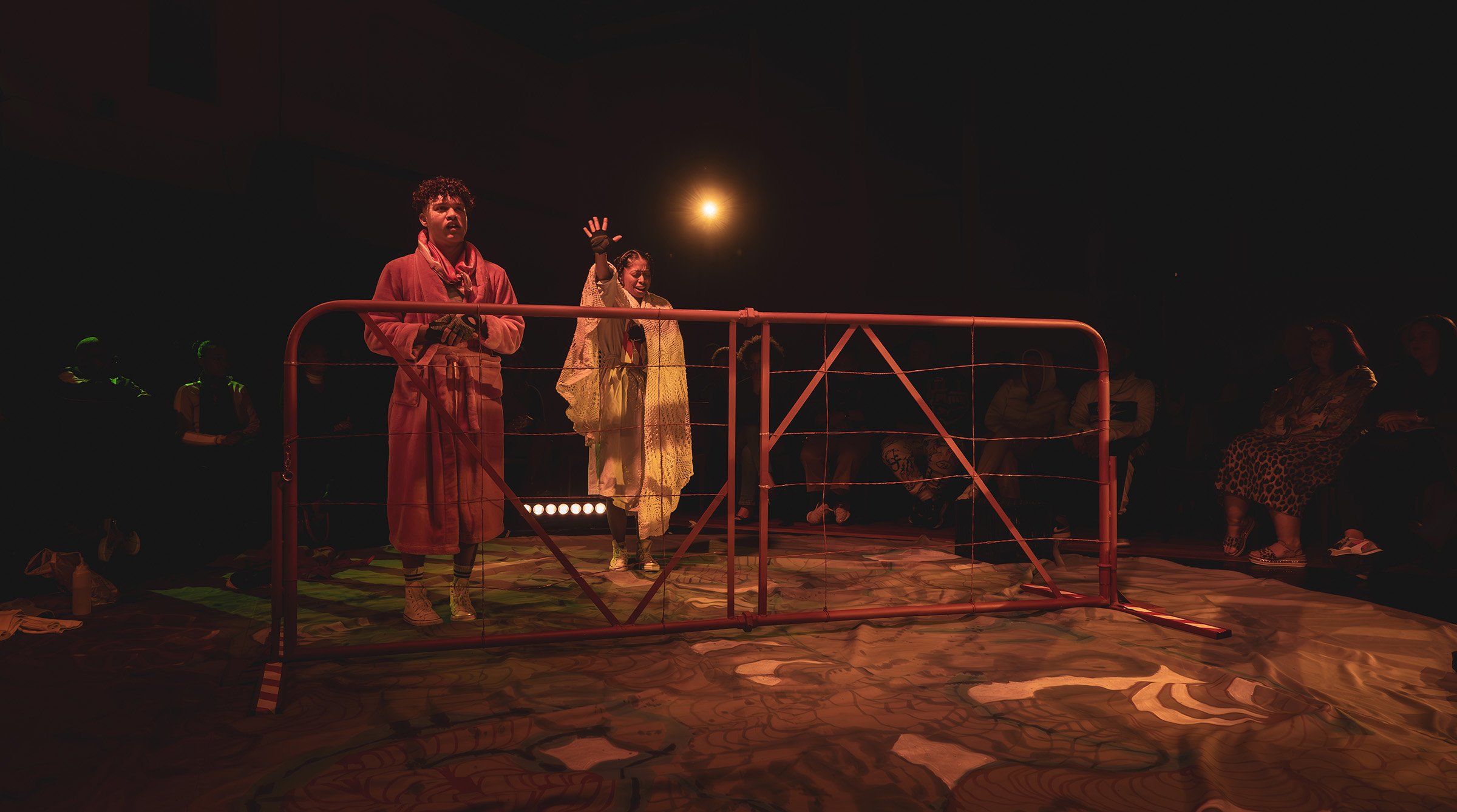 Nes die McKinney-familie se kringloop van trauma word die gehoor in ’n sirkel geplaas waarin Nadia en Xavier vir ons die stories van hulle stamboom vertel. Hulle dra versigtig ’n groot rooi plaashek tot in die middel van die kring. Stuk vir stuk begin vertel die twee dan vir ons wie hulle is, wat hulle gemaak het en wat hulle in skerwe sou agterlaat. Nadia en Xavier is in die 1980’s gebore, Thabo Mbeki was hulle president, daar was ’n oorlog in Irak, voeg Xavier by, maar ook in hulle familie.