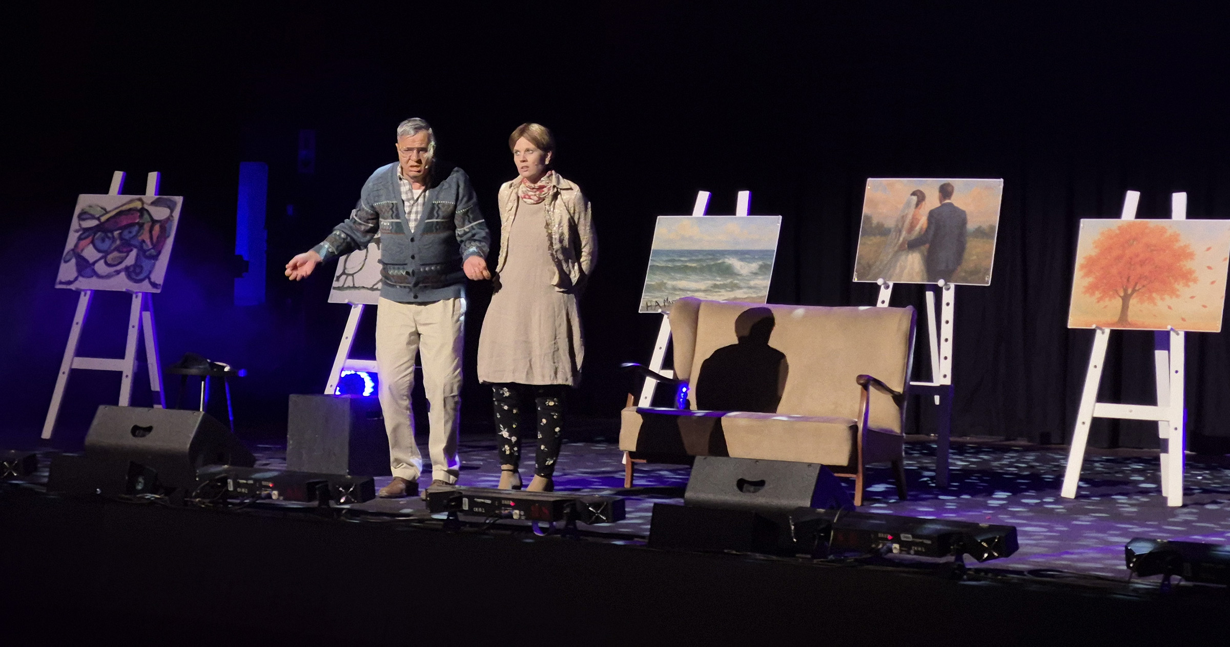 Hoewel alles met ’n ligte aanslag aangebied word, is die waarhede wat Magda en haar Erhard tussendeur die kwinkslae kwytraak, treffend en in die kol. En die wonderlike ding is dit raak régtig nooit soetsappig nie. Hulle dans op “Hoeka-Toeka”, sing ’n lied, praat oor die dood en huwelike, en natuurlik ook oor die liefde: “Eers sleep hy vlerk en dan sleep hy die hele voël!” Gemaak verontwaardig, en omdat Erhard stik oor die stelling, sê sy dan ook: “Nie daai voël nie, my herder! Haal jou kop uit die gutter. En jou brein ook!” Knipoog.